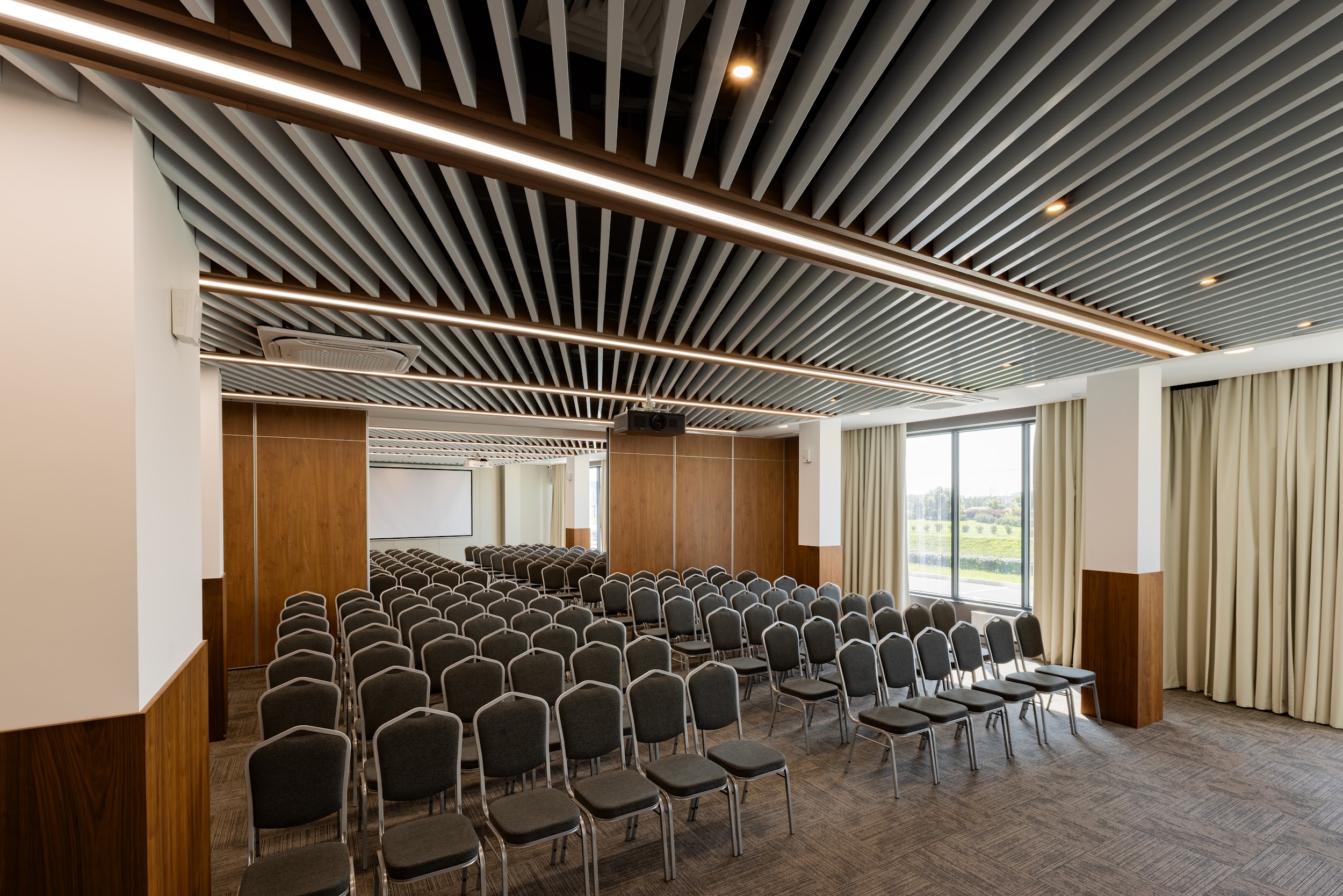 Просторный зал до 200 гостей – подходит для любого формата: от фуршета до тимбилдинга