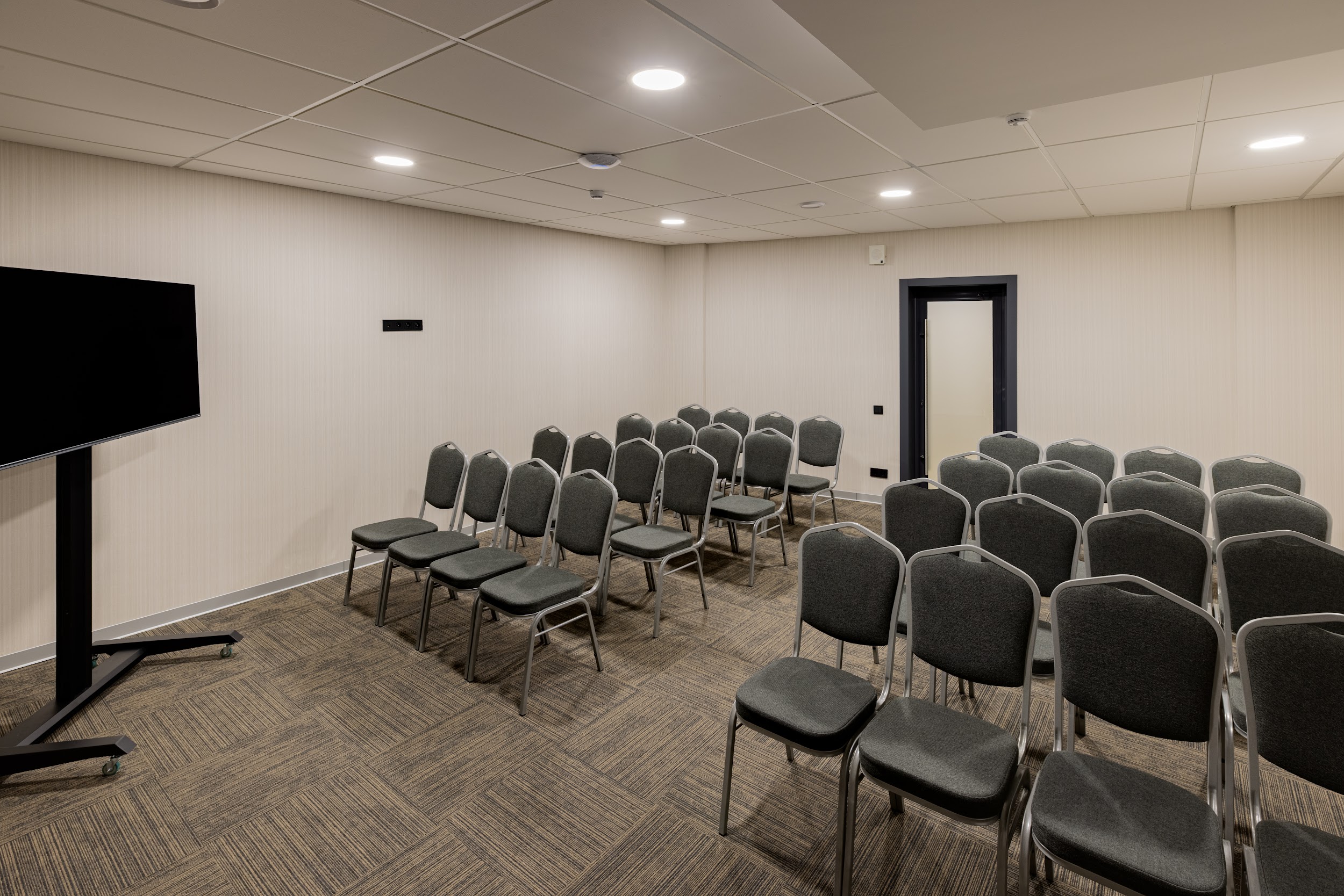 Переговорная комната площадью 35 кв.м идеально подходит для тренингов, семинаров и деловых встреч, обеспечивая комфортную и приватную рабочую атмосферу.
